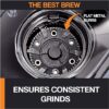 Krups Precise Stainless Steel Flat Burr Grinder 8oz, 32cups bean hopper 12 Grind from Fine to Coarse 110 Watts Removable Container, Drip, Press, Espresso, Cold Brew, 2,12 cups ground coffee Black