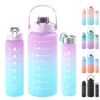 Large Capacity Sports Water Bottle With Straw Portable Handle Heat-resistant Outdoor Frosted Plastic Gradient Color Space Kettle quantity