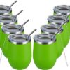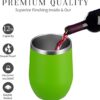 MEWAY 12oz/8 Pack Wine Tumbler Glasses with Lid – Stemless Double Wall Vacuum Stainless Steel Travel Tumbler – Keeping Cold & Hot for Wine,Coffee,Cocktails,Gifts (Fruit green,Set of 8)