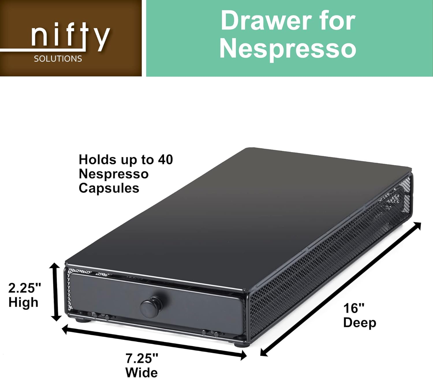 Nifty Small Nespresso Original Line Capsule Drawer – Black, 40 Capsule Pod Pack Holder, Non-Rolling Sliding Drawer, Under Coffee Pot Storage, Home Kitchen Counter Organizer