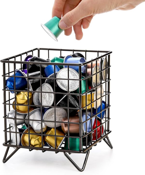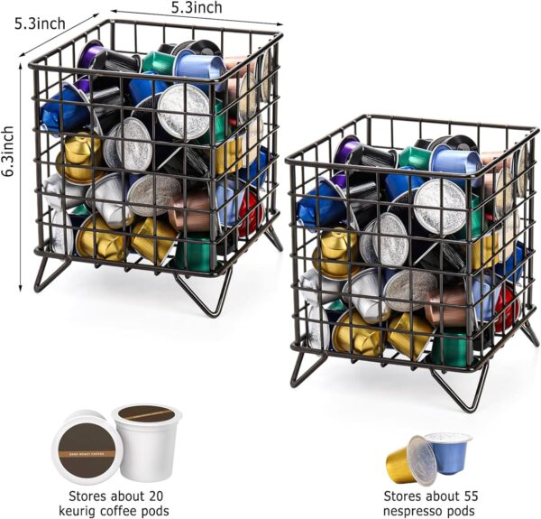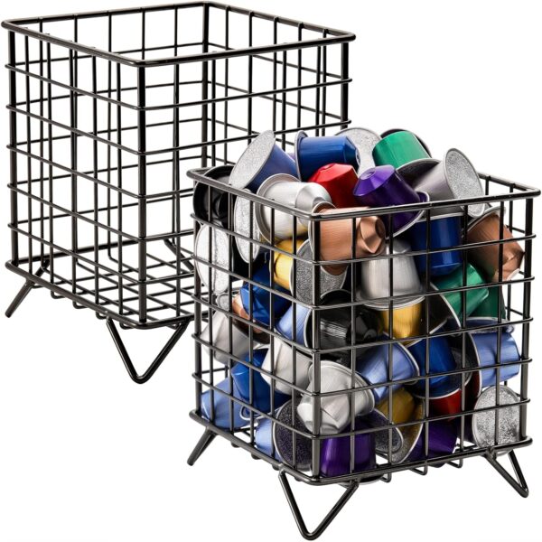 Okllen 2 Pack Coffee Pod Holder, Square Wire K Cup Holder Espresso Pod Organizer, Metal Coffee Pod Storage Basket for Kitchen, Pantry, Office, Cafe, 5.3″ x 5.3″ x 6.3″, Black