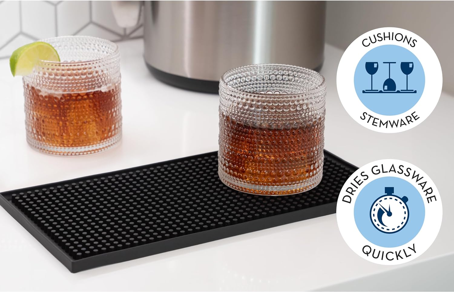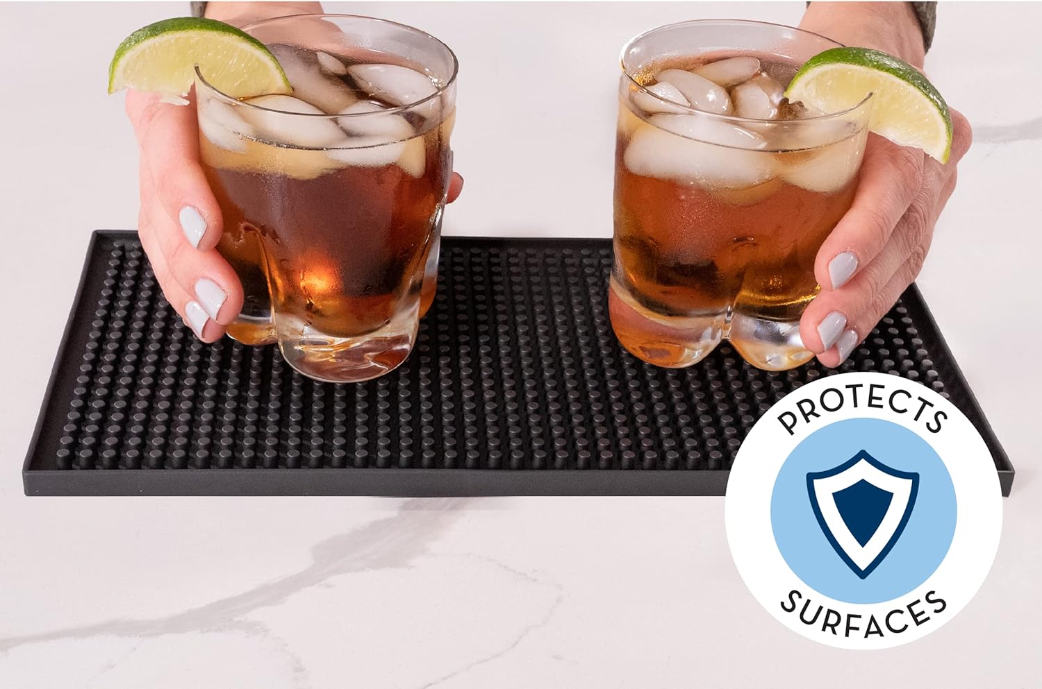 / S&T INC. Rubber Bar Mat for Countertop, Non-Slip Bar Mat for Home Bar Cart, Coffee Maker Mat for Countertops, 5.9 Inch x 11.8 Inch, Black, 2 Pack