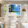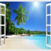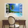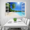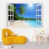 Self-Adhesive Wall Sticker Romantic Living Room Bedroom Study Office Decorative Wall Sticker Ocean Scenery Fake Window Sticker Mural (17.3″×27.6″, Palm Beach)