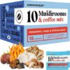 Shroomzup Mushroom Coffee Instant with 10 Mushrooms – 15 Pack with Reishi, Chaga, Turkey Tail, Cordyceps, Lion’s Mane, Shiitake, Maitake Mushrooms – Arabica and Robusta Instant Coffee Vegan for Focus Visit the Shroomzup Store