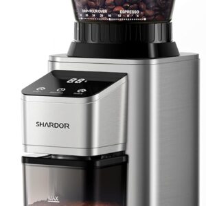 SHARDOR Conical Burr Coffee Grinder Electric, Adjustable Touchscreen Burr Mill with 48 Precise Settings, Precision Electronic Timer, Anti-static, Brushed Stainless Steel