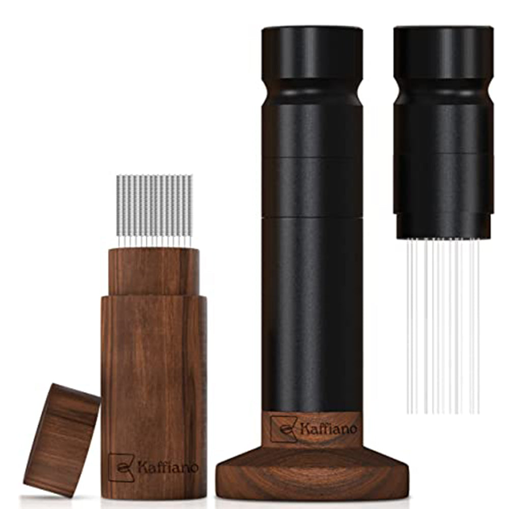 WDT Espresso Distribution Tool – Barista Grade Coffee Stirrer – Included 20 Flat Needles 0.35mm with Case – Matte Anodized Aluminum, Walnut Base – Improves Extraction And Reduces Channeling