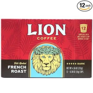 Lion Coffee French Roast, Single-Serve Coffee Pods – 12 Count Box
