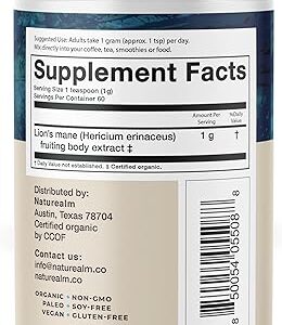 Naturealm – Lion’s Mane Powder – Brain Health Superfood Supports Focus and Nerve Health, 2.1 oz, 60-Day Supply