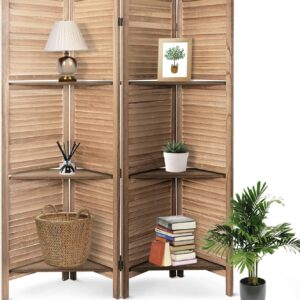 Panel Room Divider with Shelves, 5.6Ft Tall Folding Partition Room Divider Wall Privacy Screen Room Dividers Room Divider with 3 Removable Storage Shelves, Retro Brown