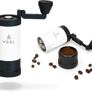 VSSL Java Manual Coffee Grinder, 20 Gram Capacity, Stainless Steel Burr, 50 Settings, Tusk White