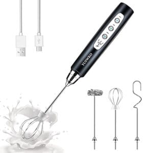 Frother Handheld with 3 Heads, Electric Whisk Drink Foam Mixer with USB Rechargeable 3 Speeds, Mini Frother for Coffee Latte, Cappuccino, Hot Chocolate, Black